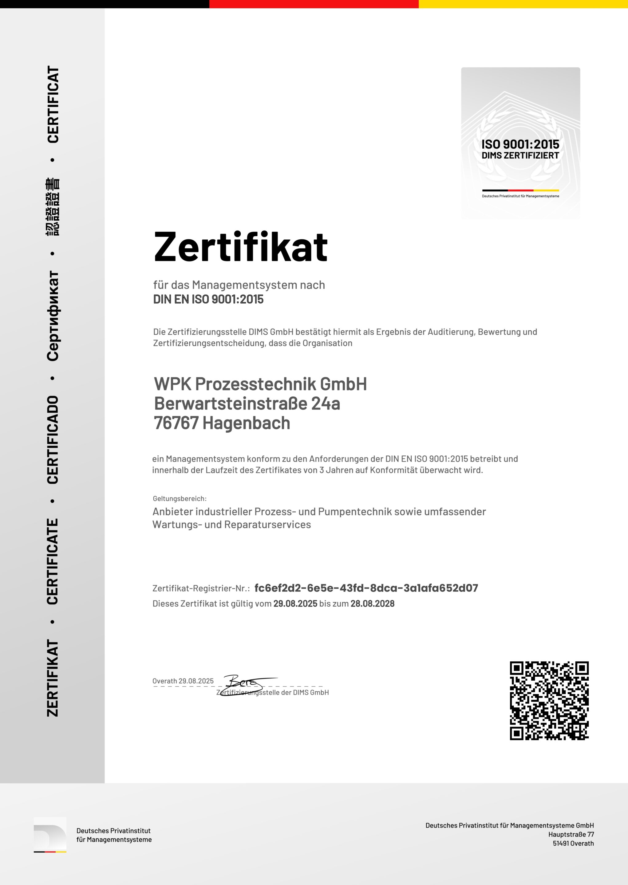 • Zertifizierungsstelle: DIMS GmbH